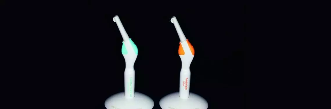 Lampa FotoSan 630 o prawie identycznym wyglądzie (jedyna różnica to kolor silikonowych osłon włączników) emituje światło o długości 630 nm. Długość fali jest dostosowana do wykorzystywanego fotouczulacza. W celu zwiększenia ekspozycji fotouczulacza pracy towarzyszą delikatne wibracje wymuszające cyrkulację roztworu preparatu. Obie lampy posiadają zabarwienie silikonowych osłon i dedykowane końcówki światłowodowe (zdj. 2).
