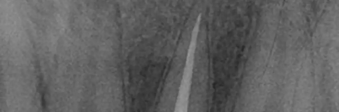 Aktualnie korzeń jest stabilny, docelowo przeznaczony do wzmocnienia wkładem z włókna szklanego i odbudową koroną porcelanową na podbudowie z tlenku cyrkonu.