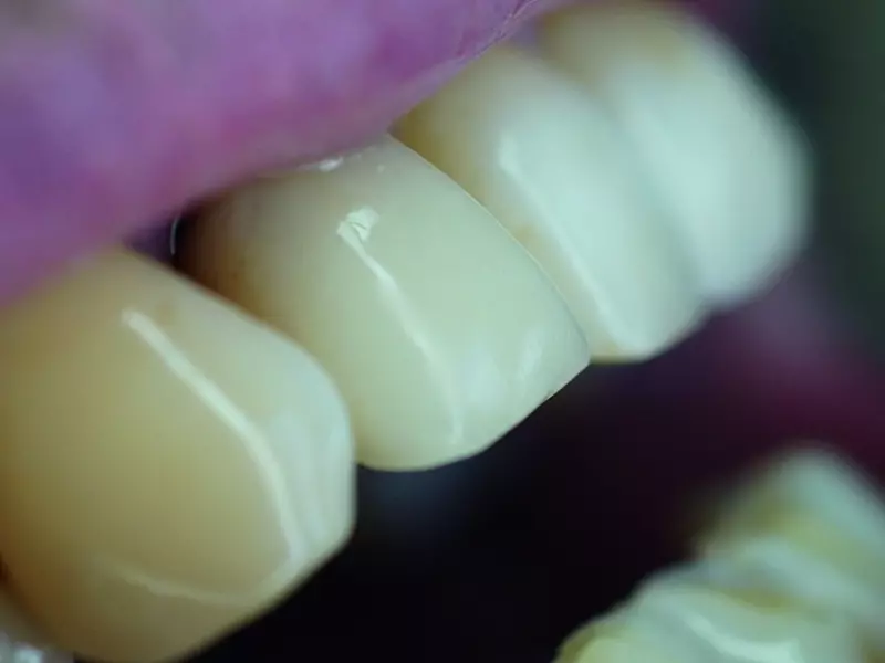 Ostatecznie na zębie 11 zacementowano tymczasowy ząb ćwiekowy wykonany z kompozytu tymczasowego i spinacza biurowego, posługując się wyciskiem pobranym przed rozpoczęciem leczenia. Ząb 12 został wyleczony kanałowo bez potrzeby użycia MTA (zdj. 13).