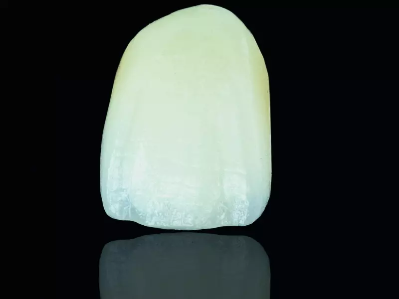 Do usunięcia części materiału kompozytowego z powierzchni wargowej wykorzystano końcówkę Profin® z pilniczkiem wolframowym, którego twardość pozwala na selektywne opracowanie kompozytu, ale nie stanowi zagrożenia dla naturalnego szkliwa (zdj. 4). Po zmniejszeniu grubości warstwy materiału rekonstrukcji uwidoczniła się nadmierna przezierność materiału kompozytowego (zdj. 5). Pozwoliło to lepiej zrozumieć intencje lekarza wykonującego tę pracę dostępnymi onegdaj materiałami.