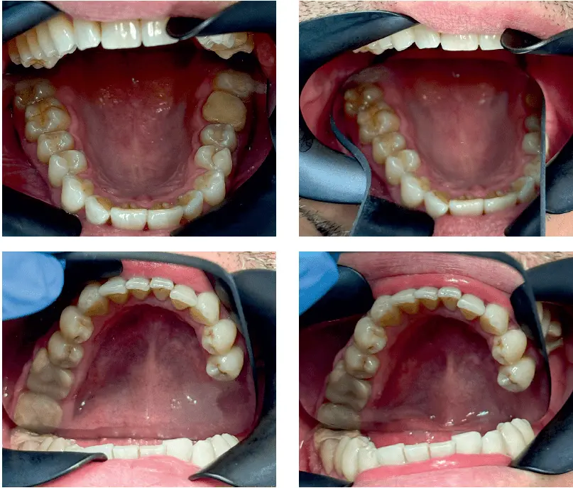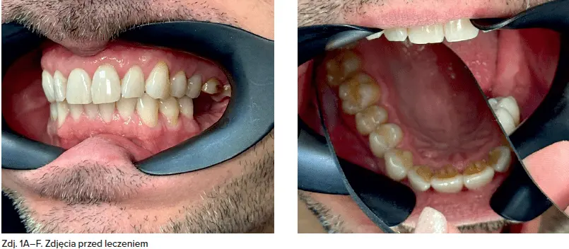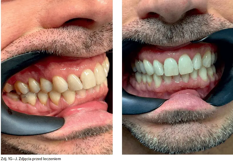 45-letni pacjent zgłosił się do poradni protetyki stomatologicznej w celu oceny oraz odbudowy zębów w żuchwie. Zlecono wykonanie badania TK żuchwy – badania OPG (zdj. 1A–J).