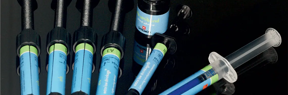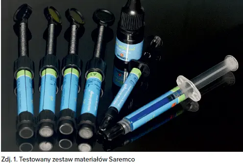 Przyjęta metoda oznaczania produktów ujmuje prostotą – kolejne z nich oprócz nazwy producenta opisuje skrót właściwości. I tak do testów przekazano materiał ELS, ELS Flow i ELS Unibond. Skrót ten oznacza materiał charakteryzujący się ekstraniskim skurczem polimeryzacyjnym (Extra Low Shrinkage). Materiały i bond są konfekcjonowane w skromne, żeby nie powiedzieć ascetyczne, standardowe formy strzykawek i buteleczki dla bondu. Zacznijmy zatem w kolejności użycia – od systemu łączącego.