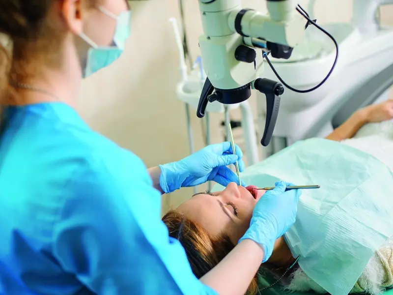 Przeszła naświetlanie i kilka cykli chemioterapii na przestrzeni pięciu lat, w momencie wizyty była wolna od choroby nowotworowej od ponad roku. Ryzyko wystąpienia nawracającego rozpadu tkanek zęba przy zastosowaniu tradycyjnego bondingu i kompozytów określono jako wysokie, dlatego pierwszym krokiem było dokładne usunięcie próchnicy z pomocą wykrywacza próchnicy (zdj. 2).