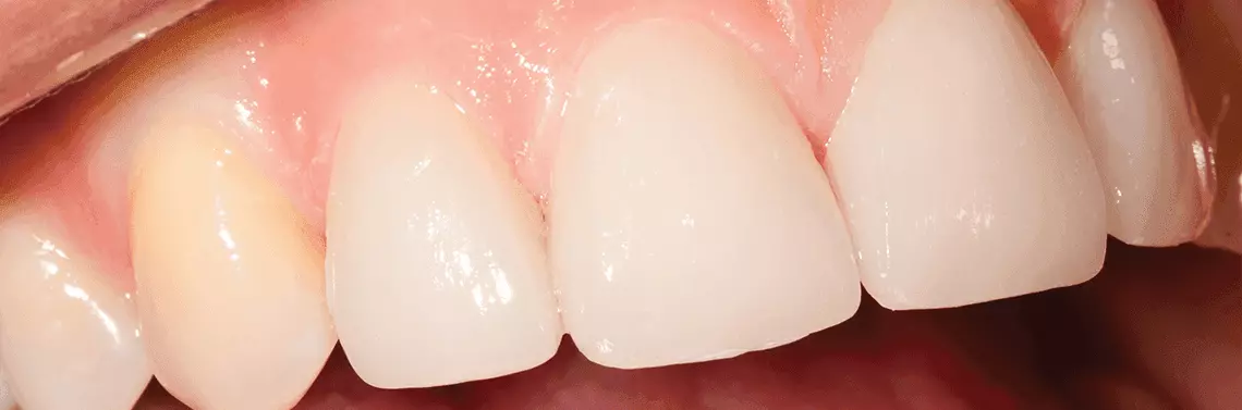 Uzupełnienia wykonano w systemie IPS Empress Esthetic techniką cut-back i zacementowano za pomocą cementu Variolink II (Ivoclar Vivadent). Uzyskano bardzo dobry efekt estetyczny przy spełnieniu wymogów funkcjonalnych. Na wizytach kontrolnych zaobserwowano ponadto prawidłową, stopniową adaptację dziąsła brzeżnego w okolicy wykonanych uzupełnień. Rekonstrukcja zębów 13 i 23 zapewniała prawidłowe odtworzenie prowadzenia kłowego.