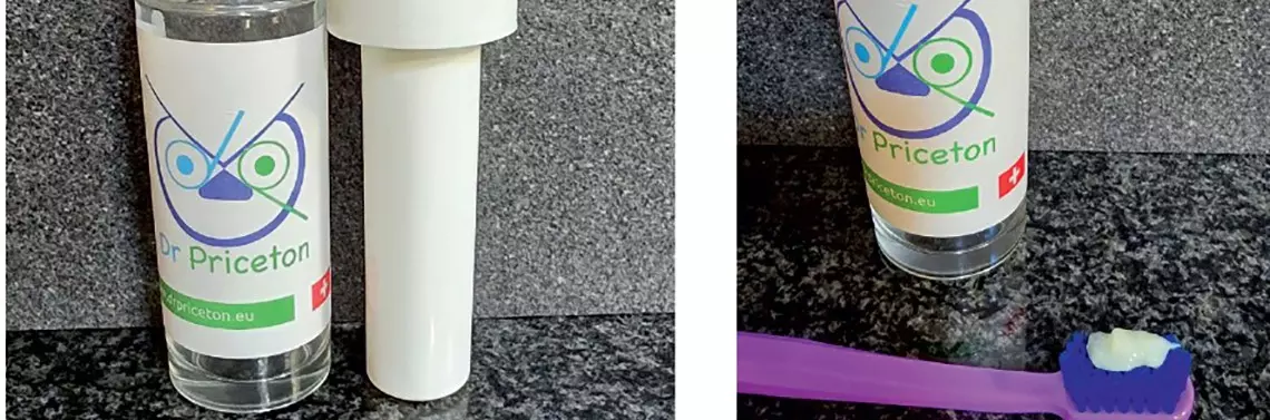 Do tej pory wszystko jest zgodne z przyjętym postępowaniem. Autor pomysłu całkowicie zmienia założenia działania profilaktycznego, zakłada mianowicie pokrywanie powierzchni zębów powłoką hydrofobową, która uniemożliwi tworzenie płytki nazębnej. Założenie nie budzi wątpliwości. Metoda realizacji również jest prosta, logiczna i całkiem przyjemna, a dodatkowo świetnie znana każdemu, kto myje zęby. Otóż tradycyjne mycie zębów zastępujemy identycznie wykonywaną czynnością z wykorzystaniem bioproduktu. Trywializując, można powiedzieć o woskowaniu lub olejowaniu powierzchni. Choć trywialnie, opisuje to już po części skład naszej (nie)pasty. Starannie skomponowana mieszanka dwóch rodzajów naturalnych olejów i wosku pszczelego w konsystencji przypomina klasyczną pastę. Produkt jest ekologiczny, nie zawiera wody, środków ściernych, fluoru, SLS, parabenów. Dla twórców istotne jest również skierowanie uwagi na ochronę pszczół.